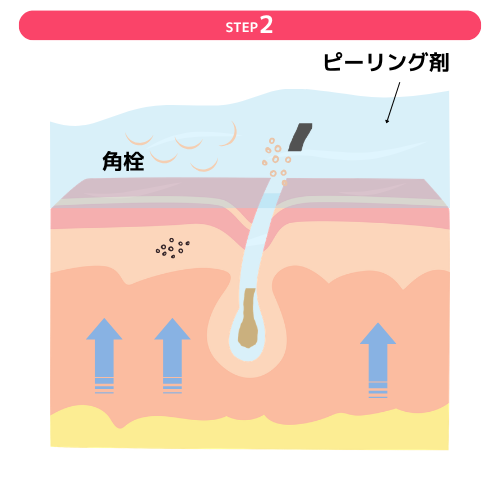 ケミカルピーリングの薬液を塗り込み、浸透させていきます。