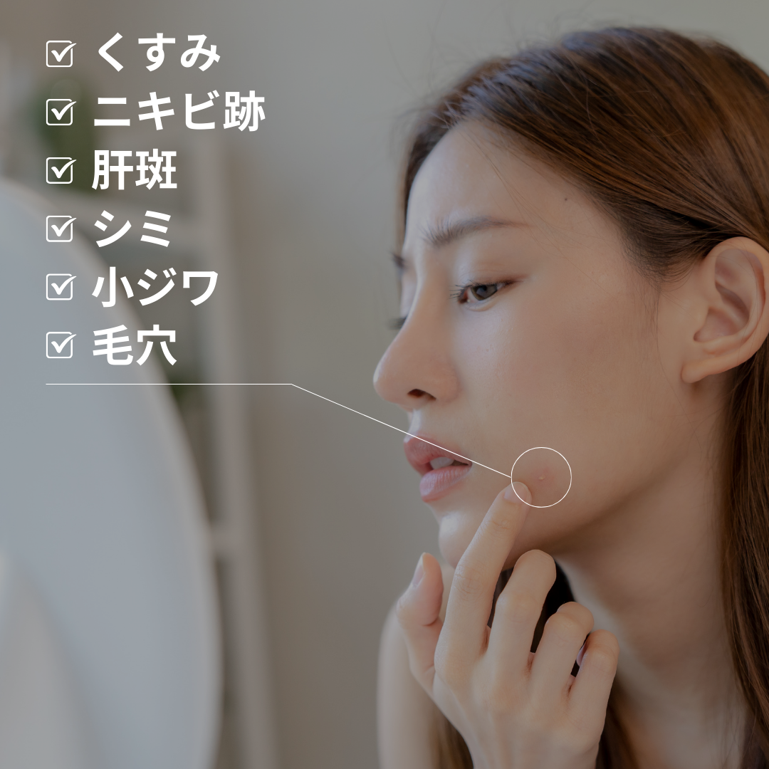 肝斑・薄いシミ・色素沈着・くすみなどに、ピコ秒照射によりやさしくアプローチします。メラニンをより細かく砕くことで、肌への負担を抑えながら透明感のある肌へ導きます。