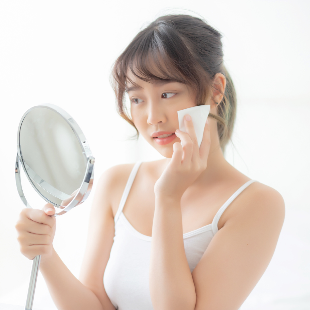 術前にクレンジングシートにて、化粧や汚れを落とします。